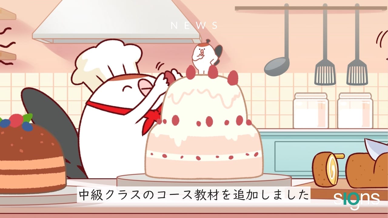 次回アップ予定の中級コース教材のテーマは、「ケーキ」です!お楽しみに!